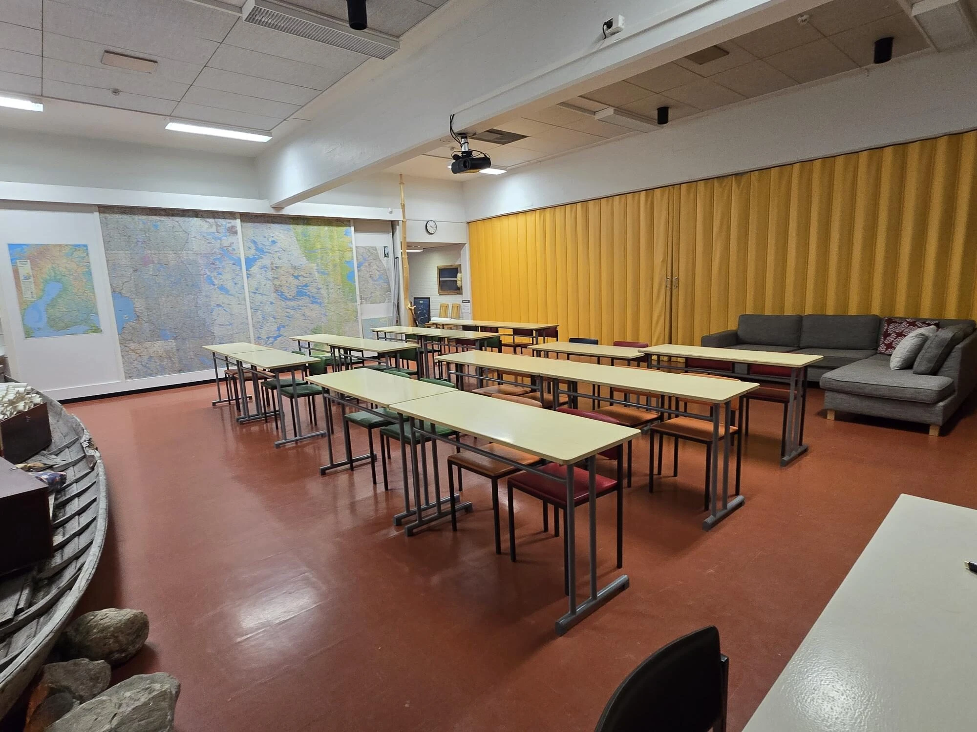 Luokkaan mahtuu 30 henkilöä, ruokalaan ja luokkaan yhteensä 60 henkilöä.